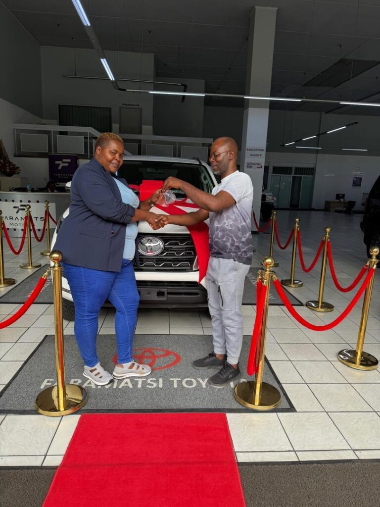 Nomsa Hove, a 3 percent shareholder of Botha Mine, receiving a white Toyota Hilux