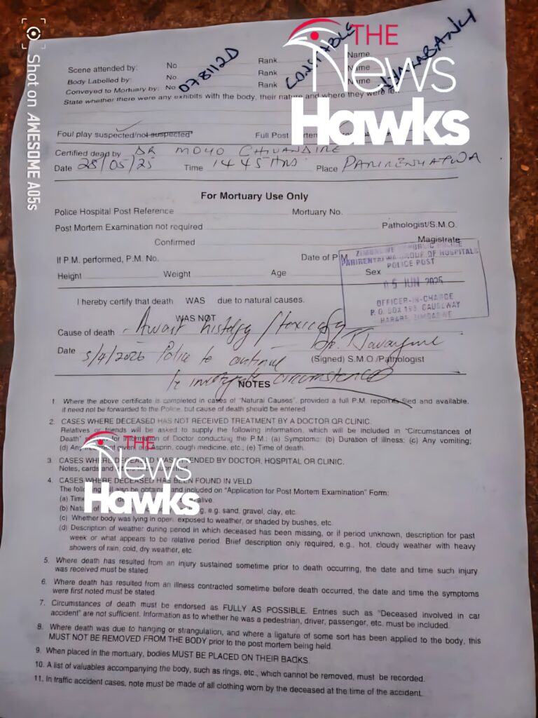 Juruvenge was picked up from his home by Ndavambi as a suspect for alleged extortion and assault at around 8am on 27 May 2025 in the company of the complainant only identified as Maphosa.
